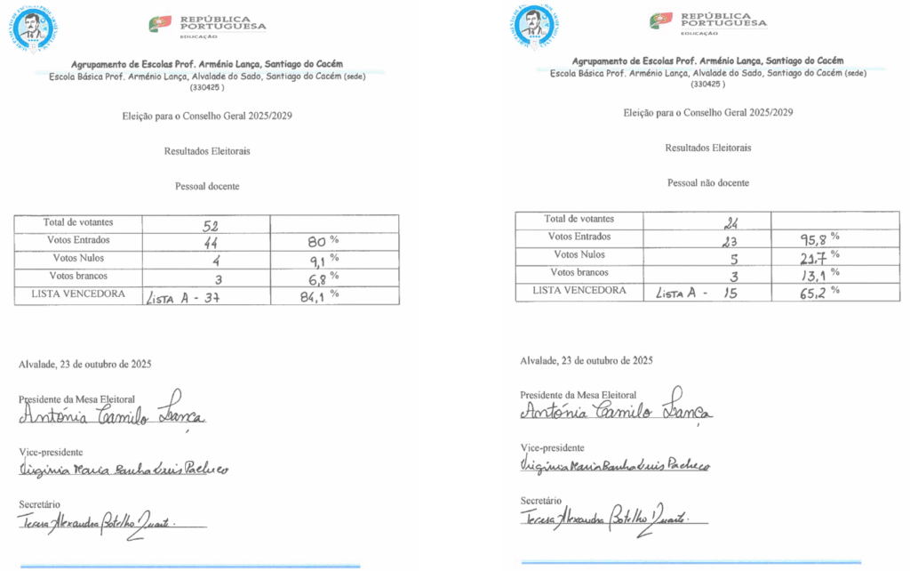 Resultados da Eleição de Representantes | Conselho Geral